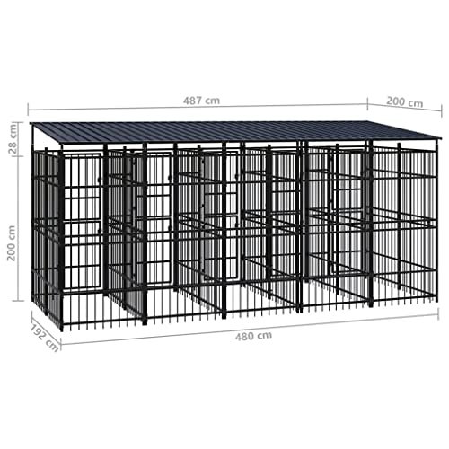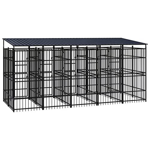Chenil Extérieur avec Toit pour Chiens Acier 9,22 m²- Chiens